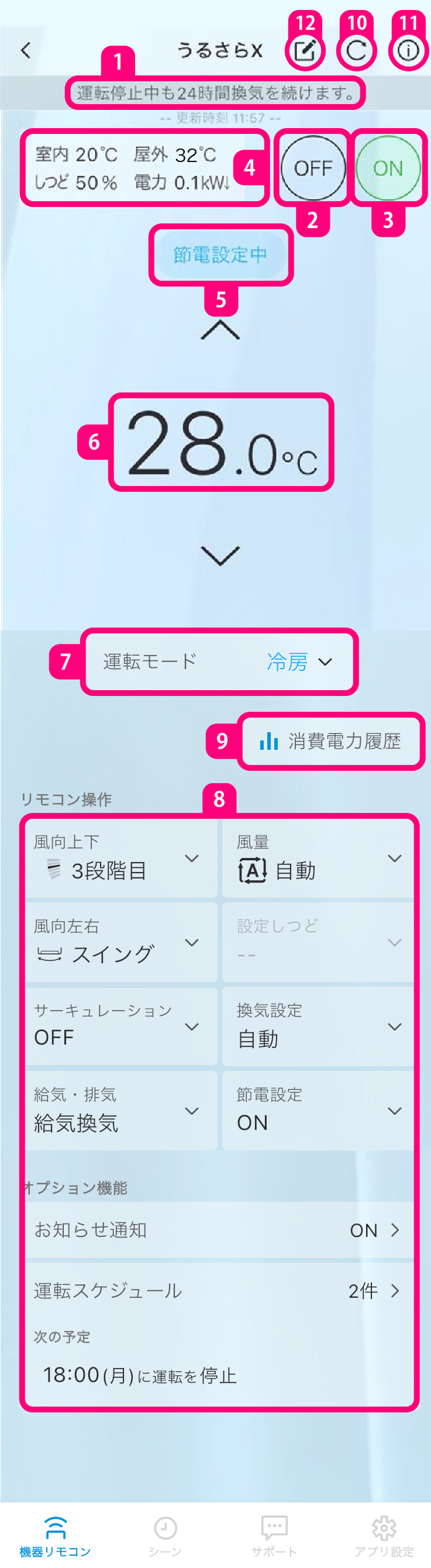 ログインをしていない場合でもエアコンの状態がスマートフォンに通知されます。 - 消し忘れ通知、低温通知は対応機種のみ行います。