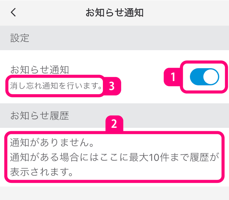 お知らせの通知履歴を表示します。