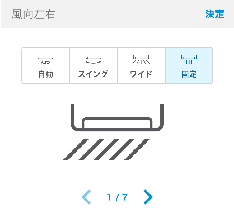 自動、スイング、ワイド、固定(風向左右1~7)から選択できます。