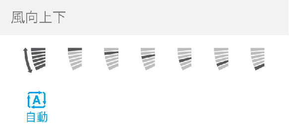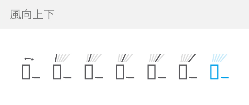 - 埋込設置など上吹風向制限中の場合、風向上下は5段目となり変更ができません。