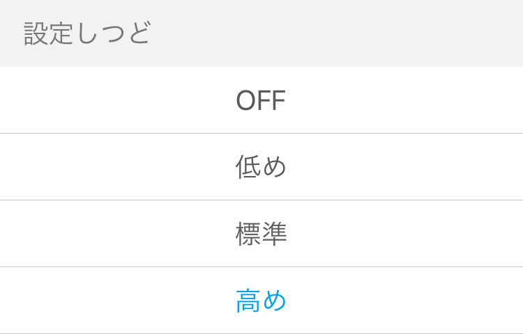 OFF、低め、標準、高めから選択できます。
