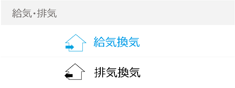 給気換気、排気換気から選択できます。