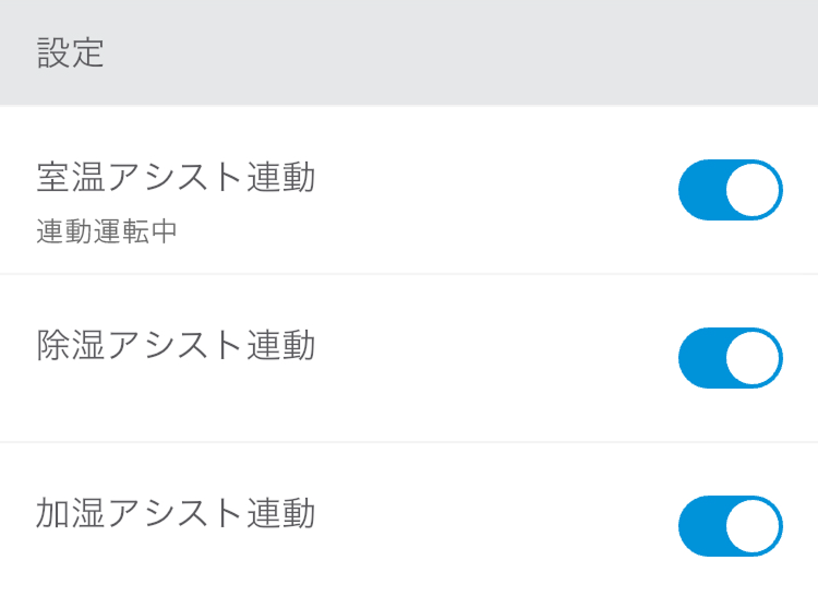 - 室温アシスト連動:冷房運転、除湿冷房運転、暖房運転、加湿暖房運転