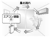 - 空気清浄機が運転停止中でも、連動の条件を満たすと連動運転を開始します。