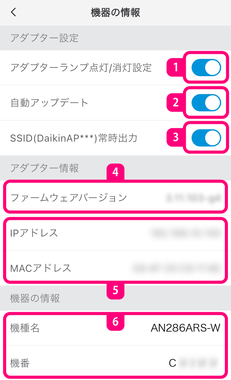 - ファームウェア自動更新中は、アプリから機器を操作できないことがあります。