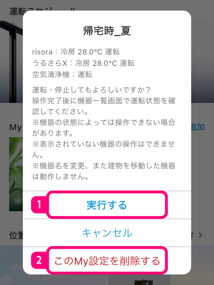 タップしてMy設定の実行・削除をします。