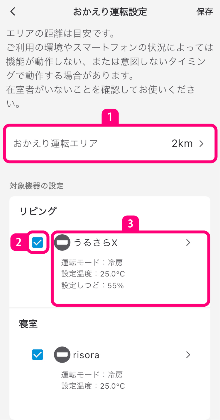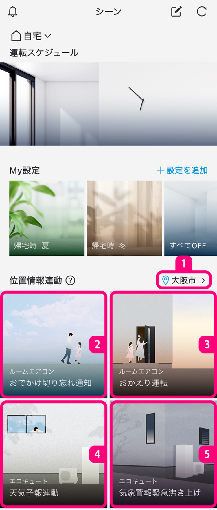 外出先からおかえり運転エリアに入ると、エアコンが運転を開始します。