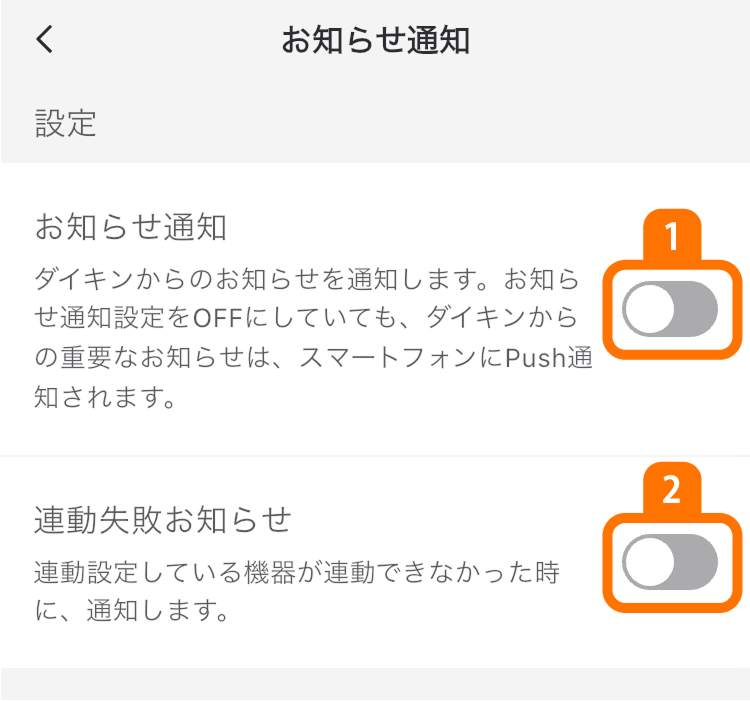 ONにするとダイキンからのお知らせを受け取ることができます。 -
