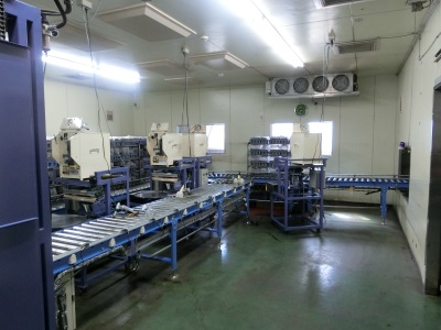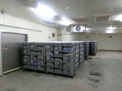 殺菌後の放冷室、菌床パック室