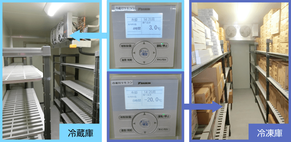 また、立地上、万が一冷凍機が故障しても部品がすぐに入手出来ない可能性もあります。その際も、冷蔵庫を冷凍庫に切替える事で応急対応が出来ます。機械側の有事にも、天候での有事にもリスク回避になります。