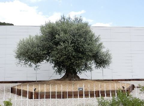 兵庫オリーブファクトリー敷地内の、樹齢1000年のオリーブの木。遥々スペインから到来。