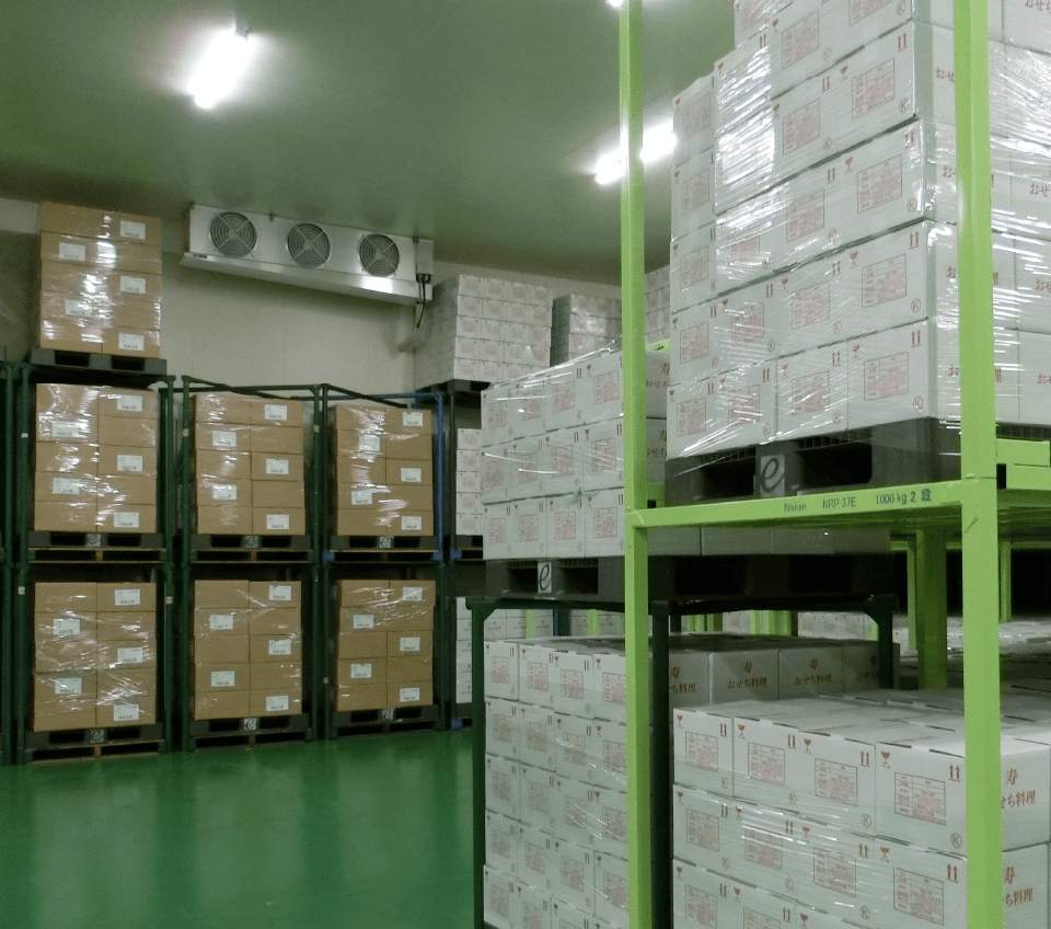 年末に向けて冷凍おせちを保管。-25℃の倉庫でお客様の荷物を安全に保管されています。