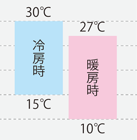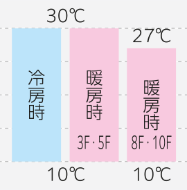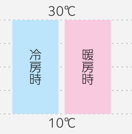一般空調よりやや低い10~30℃に