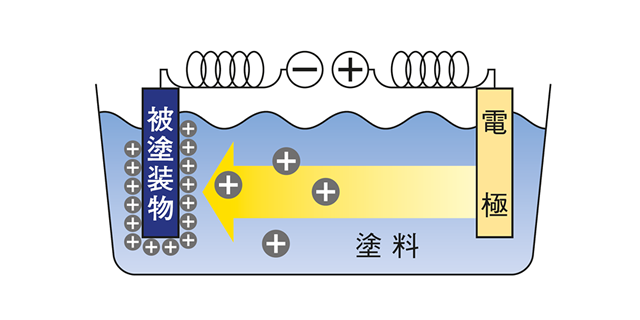 陰極とし、直流電流をかけることで、ムラのない塗膜を形成することができます。