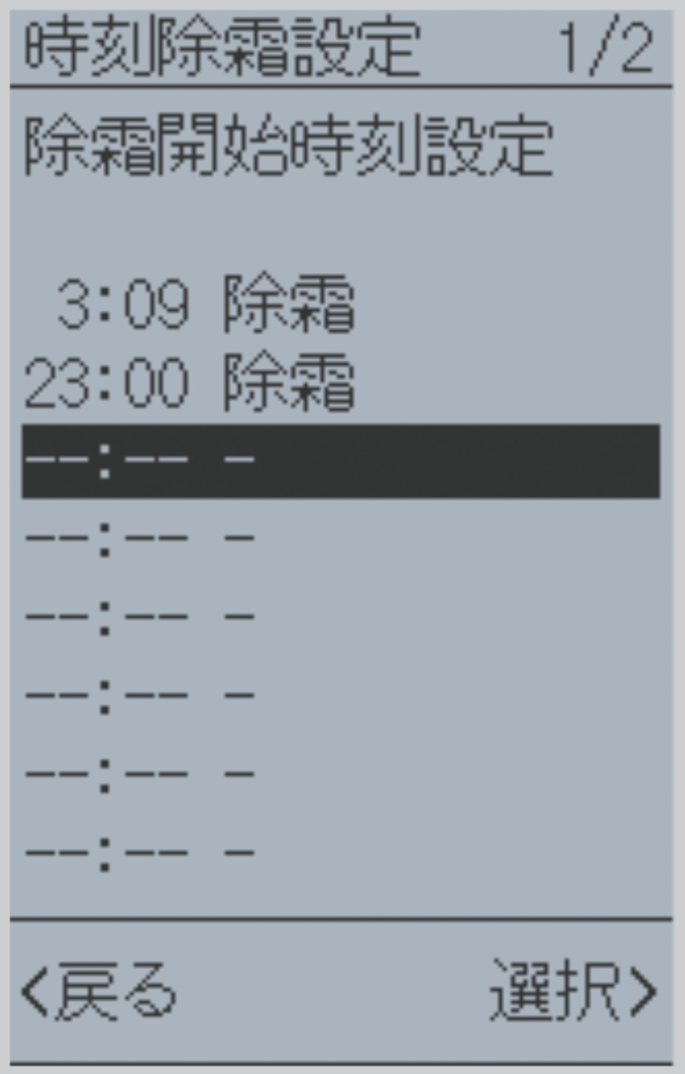 強制除霜運転の開始時刻を1 日最大12回まで分単位で設定できます。