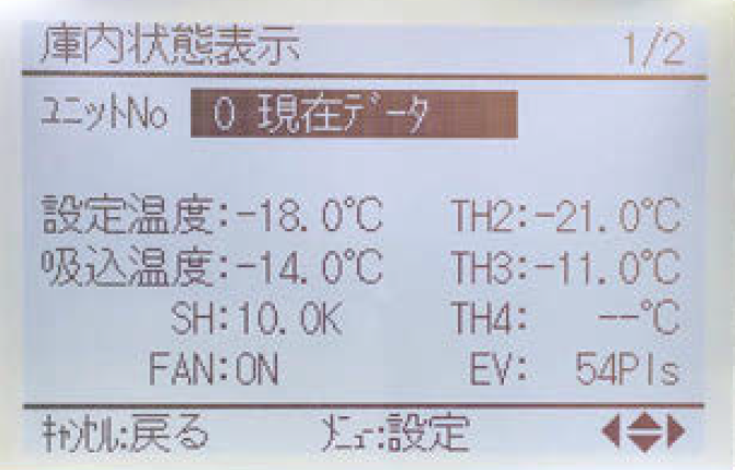 庫内・外ユニットの運転状態を知ることのできる各種データをユニット単位で表示することができます。
