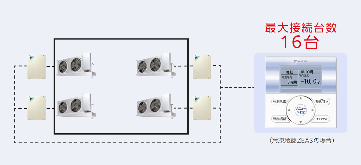 1台のリモコンで複数台の冷凍機を制御・設定・確認できます。