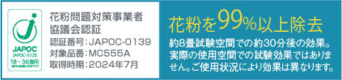 25m3(約6畳)の密閉した試験空間による約24分後の浮遊ウイルスへの効果であり、実使用空間での実証結果ではありません。
