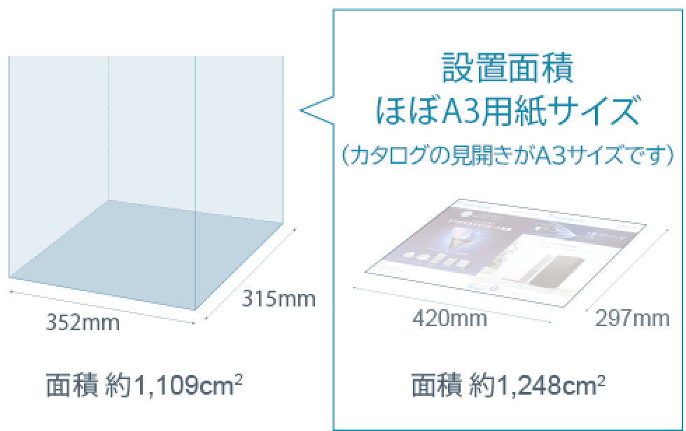 タワー型なので設置面積が小さく、設置の自由度が広がります。