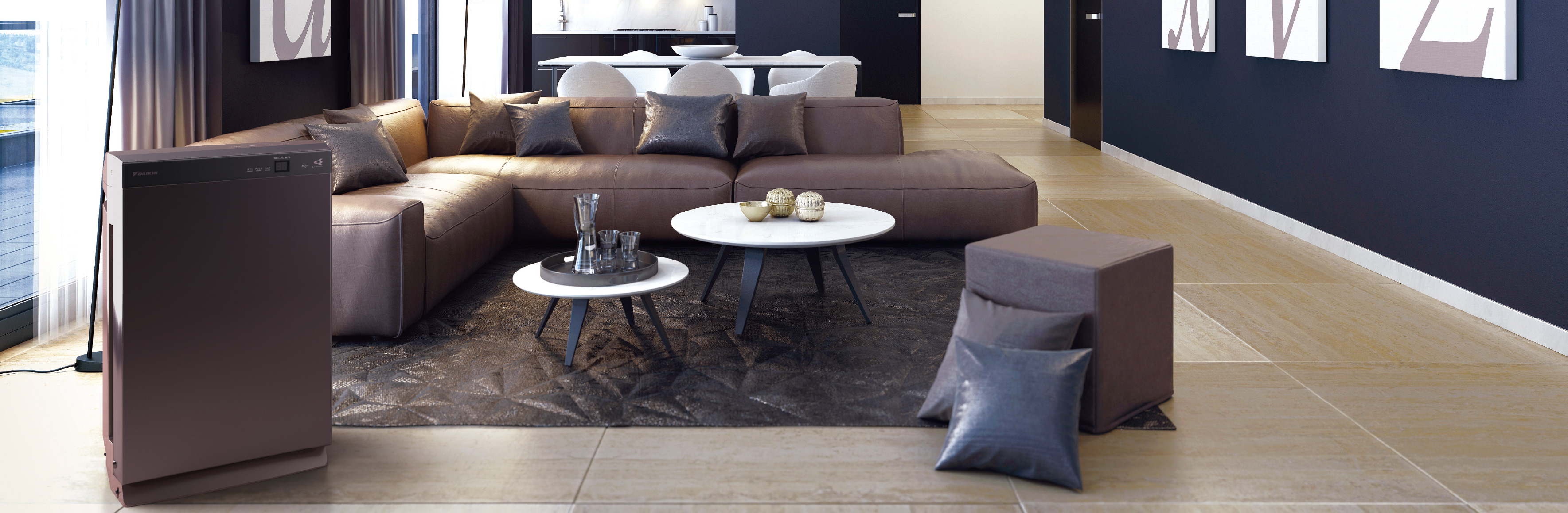 PM2.5とは2.5μm以下の微小粒子状物質の総称です。この空気清浄機では0.1μm未満の微小粒子状物質について、除去の確認ができていません。また、空気中の有害物質すべてを除去できるものではありません。32m3(約8畳)の密閉空間での効果であり、実使用空間での結果ではありません。試験機:MCZ706Aと同等機種(MCZ70W)で実施。