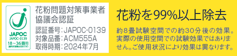 25m3(約6畳)の密閉した試験空間による約24分後の浮遊ウイルスへの効果であり、実使用空間での実証結果ではありません。