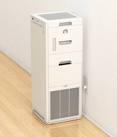 PM2.5などの微小粒子と大きなホコリを見分けて反応する高感度ホコリセンサーを搭載。ニオイセンサーと合わせて、ホコリ、PM2.5、ニオイをトリプル検知。