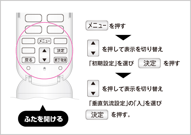 2.「垂直気流設定」を「入」にする。