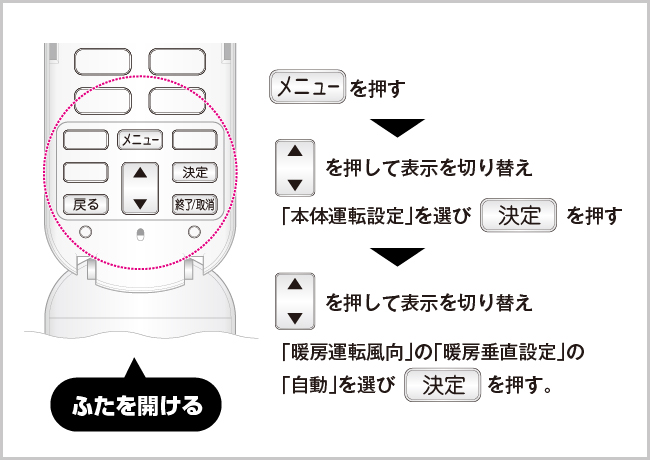 1.「風向上下」を「自動」にする。