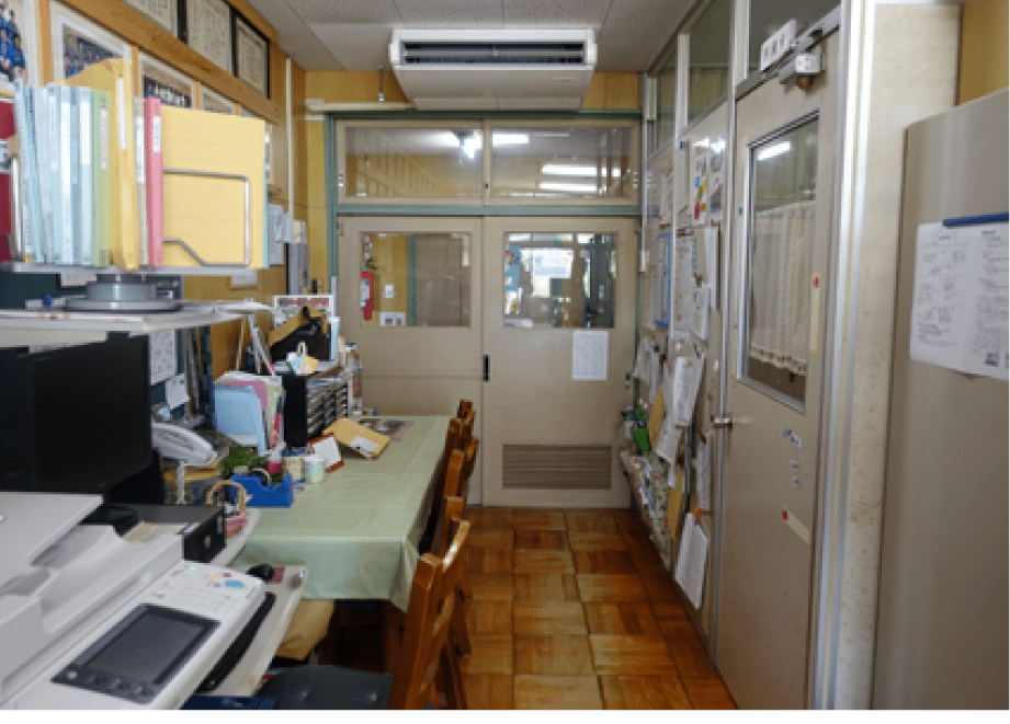 職員室、保育室に適切な能力のエアコン選定から開始。