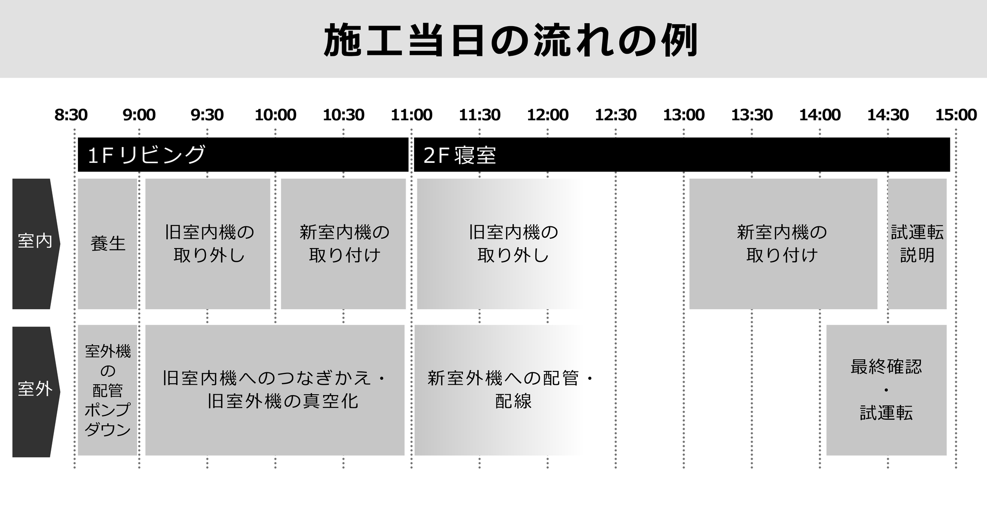 台数や設置の条件により異なりますが、下記の例では工事は約1日で完了※2します。