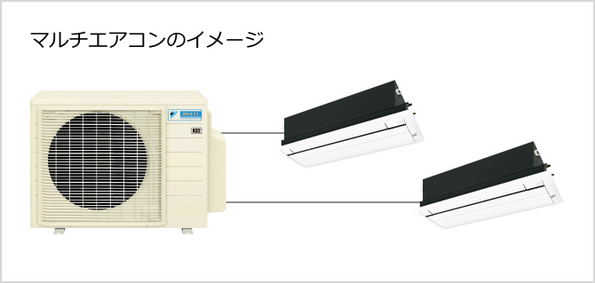 マルチエアコンとは、複数台の室内機を1台の室外機につないで運転できるタイプのエアコン。