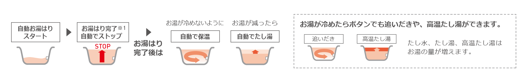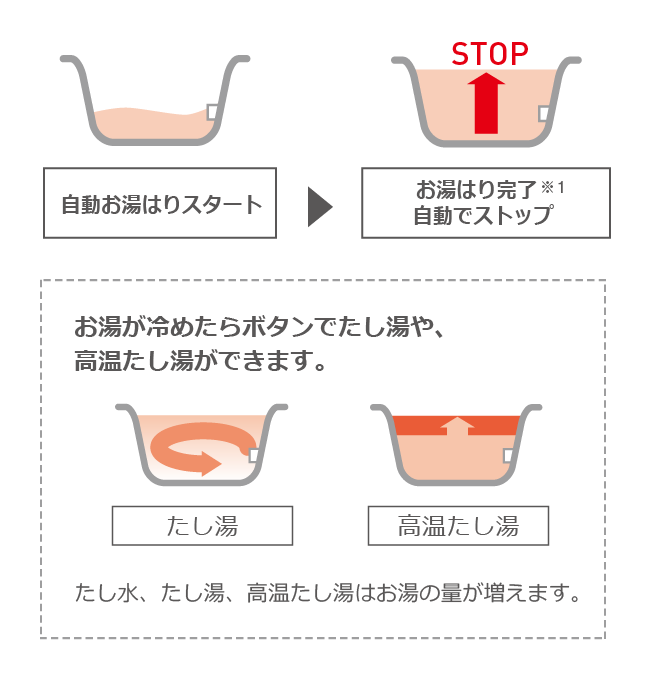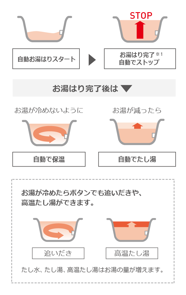 お湯はりから保温、自動たし湯まで全自動の「フルオートタイプ」