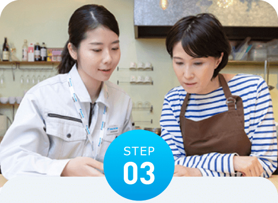 ダイキン認定の販売施工店が 無料で現場調査~お見積り※2します。見積書をご確認いただいた後、納得いただければお申込みいただきます。