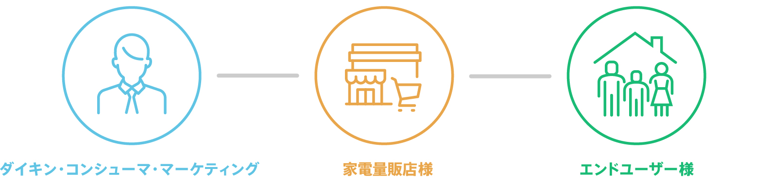 当社は、ルームエアコンや空気清浄機をはじめとするダイキン製品とお客様を繋ぐ窓口として、