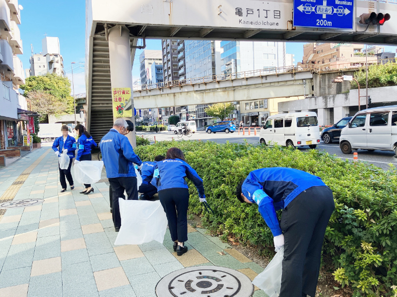 こうとうまち美化応援隊の一員として、本社周辺での清掃活動を行っています。