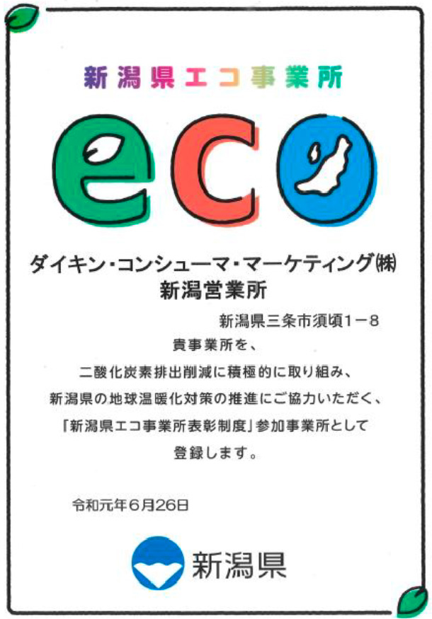 新潟県エコ事業所表彰制度登録
