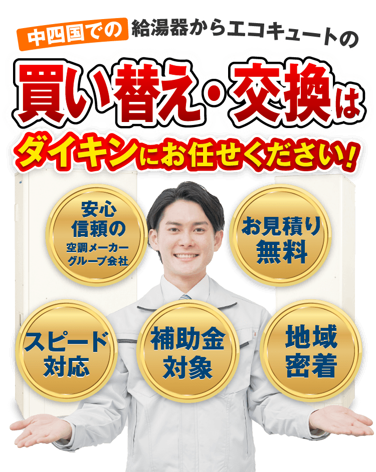 エコキュートからの買い替え・交換だけでなく、電気温水器やガス給湯器からでも交換が可能です。