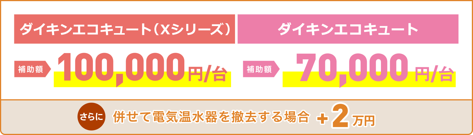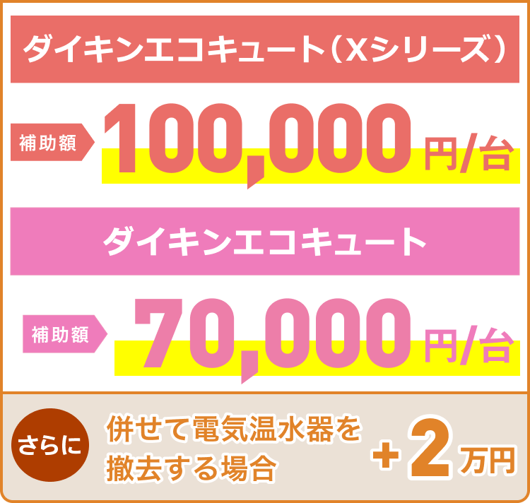 ダイキンエコキュート Xシリーズやおひさまエコキュートの導入でお得な補助金がもらえます。