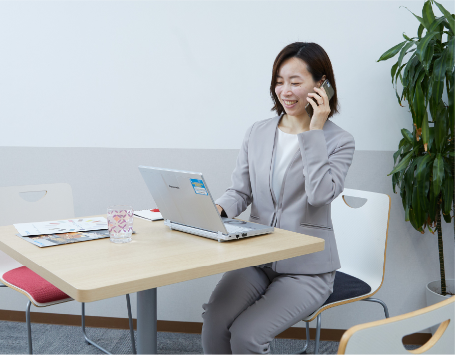 入社当時は業績の管理など社内に向けた業務を担当していましたが、新たな部署が立ち上がるのを機に異動し、現在は工務店や設計事務所といった空調機器を選定する会社や部署を訪ね、ダイキン製品をPRする業務を担っています。最初の頃は、なんとかアポイントを取って伺ってもなかなか話を聞いてもらえない場合も多く、とても苦労しましたね。最初の1年ほどはずっと手探りで、周囲の先輩方にも相談に乗っていただきながら、アプローチの仕方を模索していきました。そんな段階から始まっているので、継続的に話を聞いていただけるところが増えてきていること自体がやりがいにつながっていますし、取り扱いの無かったところにダイキン製品を採用いただけるようになるとほんとうに嬉しいですね。