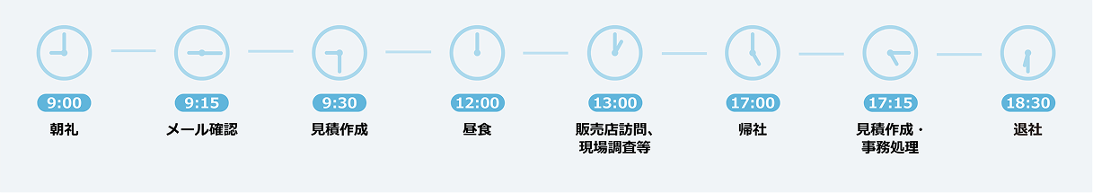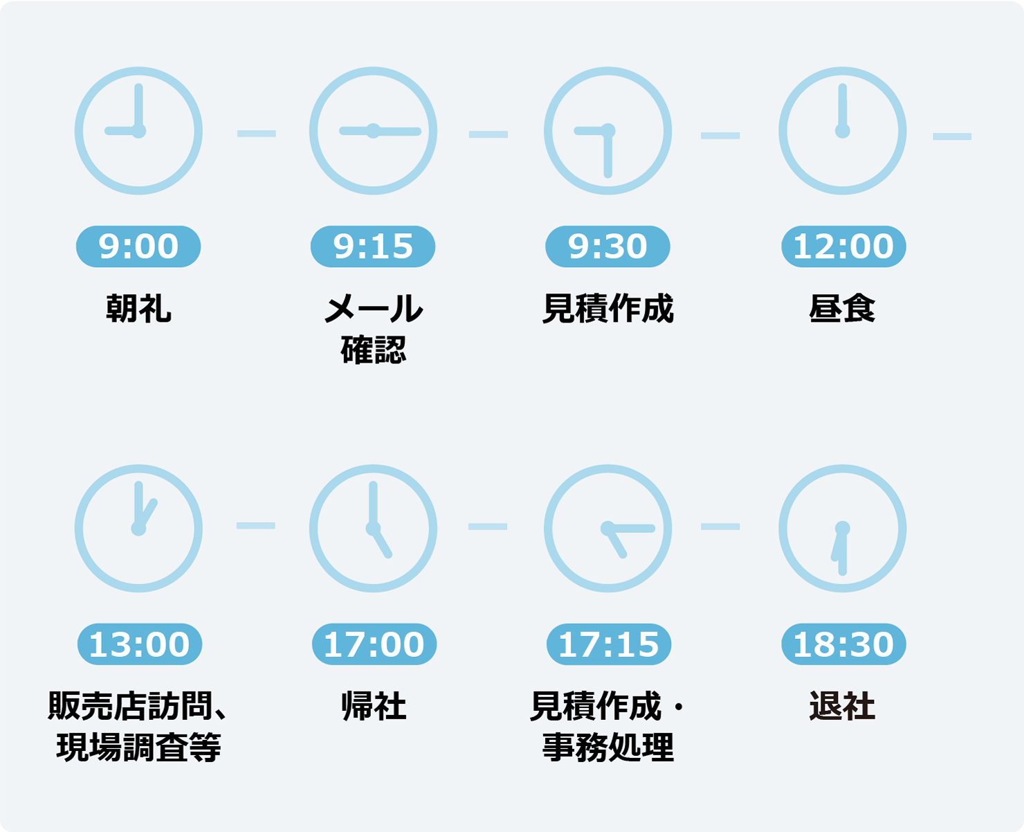 現在は、営業訪問や見積作成、事務処理を中心に、勉強会や展示会への参加など幅広い業務に携わっています。日々の業務を通じて、製品知識や営業力を身につけています。仕事のやりがいは、自分で獲得した案件を受注できたときです。これまでの取り組みや努力が結果として形になる瞬間に、大きな達成感を感じます。