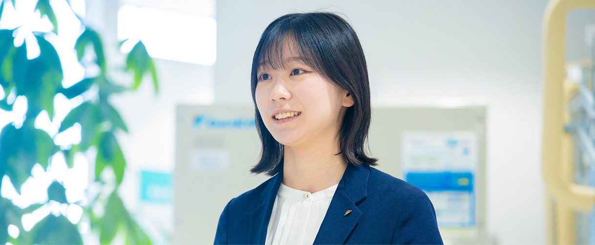 現在は、住設機器を扱う販売店様や建材卸会社様へ、ダイキン製品のご提案を行っています。また、店舗やオフィス向けの空調ソリューションを提案することもあります。この仕事のやりがいは、目に見える「成果」と「変化」です。これまで実績のなかったお客様から初めてお引き合いをいただいたり、定期的に注文をいただけるようになったりした時は特に達成感を感じます。