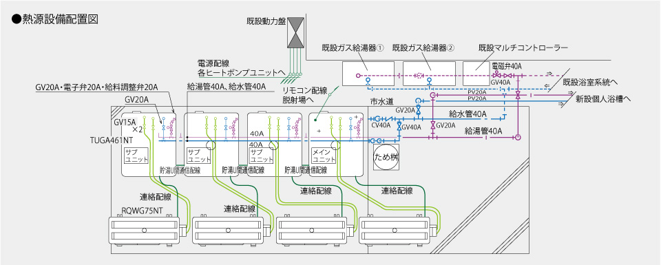 ハイブリッド方式のシステムが給湯停止弁の接続だけで容易に組め、その実績も豊富なことからダイキンさんの業務用エコキュートを選定しました。