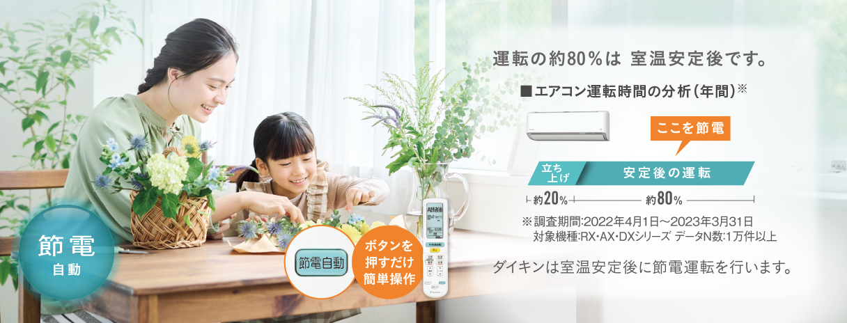 • 実際の消費電力量は条件により異なります。電力の使用量を控える運転です。能力を必要としない運転時には節電中でも電力消費が変わらない場合があります。