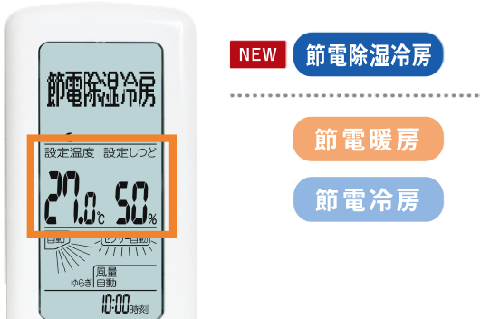 運転はじめはしっかりと空調を行い、室内が設定温度・しつどに到達し安定すると、消費電力を抑えて運転。温度に加えしつどもコントロールできるようになり、その時々の空調の必要能力に合わせてかしこく、無理をしすぎない節電運転を行います。