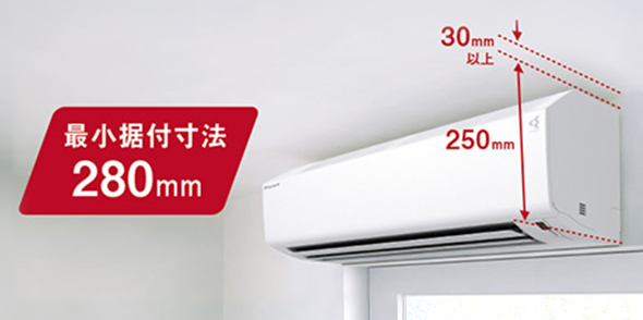 コンパクトなので据付けの自由度が高く、窓上の限られたスペースなどにも設置しやすくなりました。