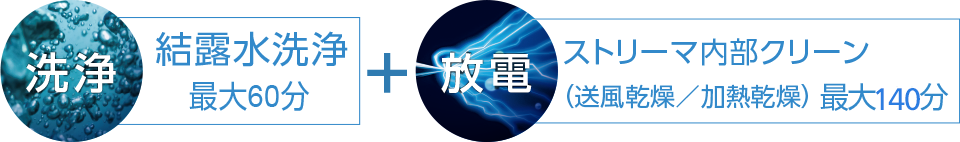 冷房・除湿運転の停止後、自動的にストリーマ照射と送風・暖房で乾燥を行います。