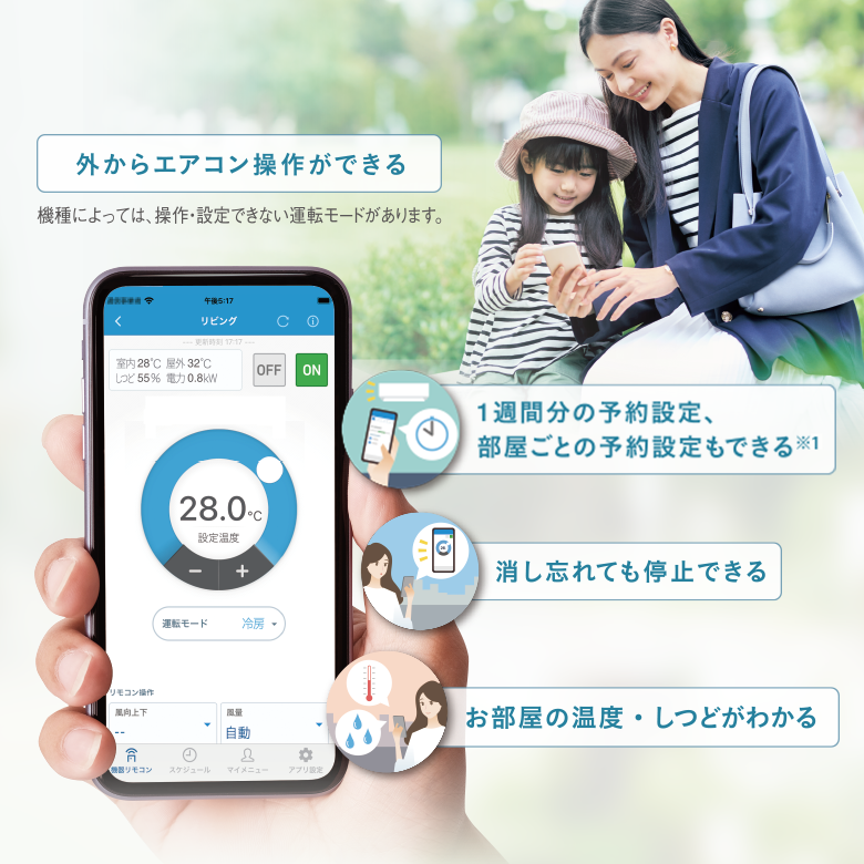 専用アプリならびにお使いの無線LANインターネット接続環境、ダイキン会員サイトのユーザー登録が必要です。