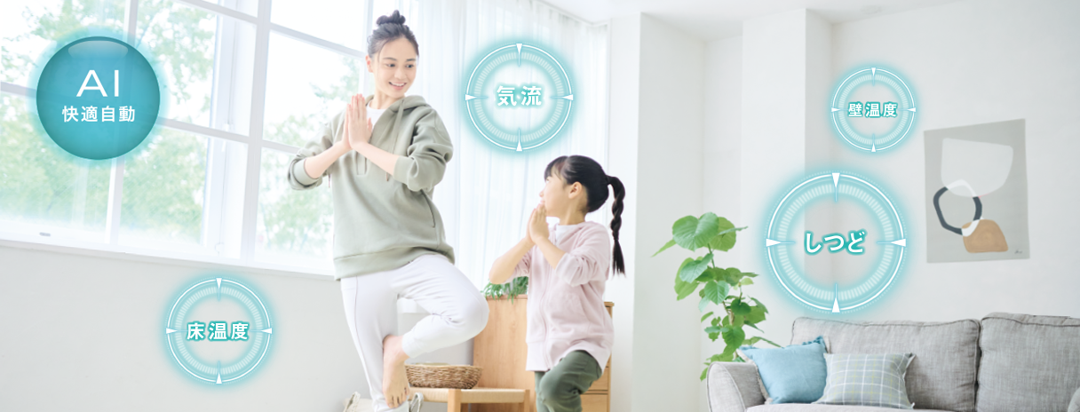 床や壁の温度(輻射熱)をセンシングした検知内容と、お客様が好みに合わせて変更された設定を記憶して「好みの運転」として学習。最適な運転・制御パターンをAIが判断し、より快適な自動運転を行います。