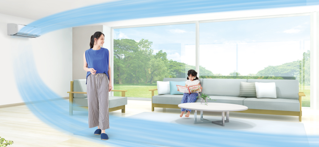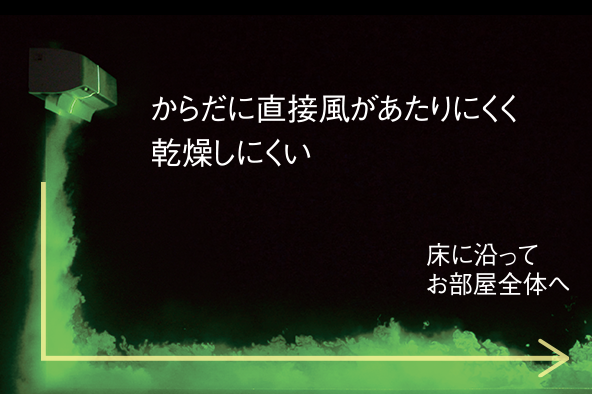 コンプレッサーの制御で、運転開始後、すぐにしつどを下げ、涼しさをお届けします。