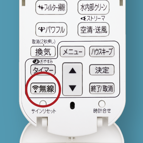 エアコンをネットワークに接続する際、無線LAN接続設定に必要なSSID・KEYの入力作業が不要に。リモコンの「無線ボタン」を押すだけで、かんたんに設定できます。
